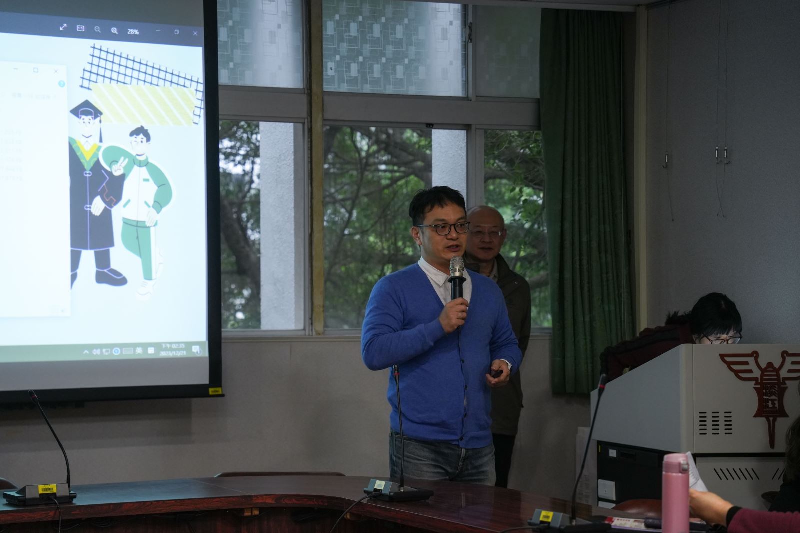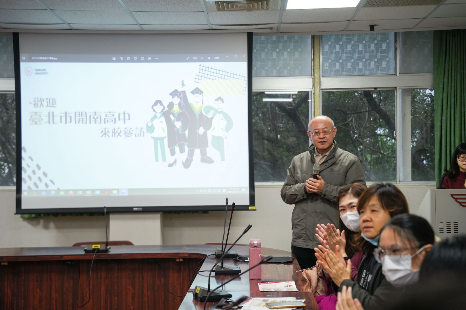 緊接著進入各系的簡報介紹時間,中文系由殷主任、歷史系由高上雯主任、資圖系由梁鴻栩老師、大傳系由楊明昱主任、資傳系賴惠如主任分別進行各系介紹,每系透過短短8分鐘的時間,帶領開南高中同學一窺文學院五系的樣貌。